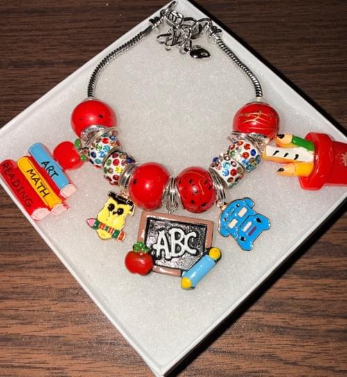 A custom teacher charm bracelet made for teachers