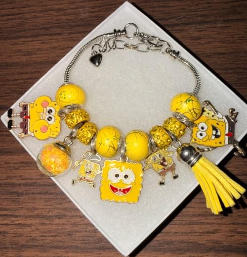 A custom yellow and silver Spongebob charm bracelet made for women